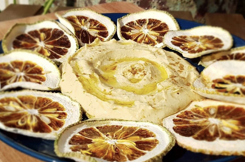 Chickpeas (soaked overnight) with tahini, olive oil, roasted kapia pepper